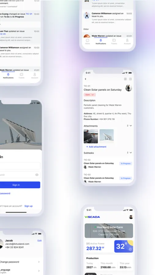 Viscada is a powerful solar monitoring platform that revolves around the 6 feature groups of a typical IoT system