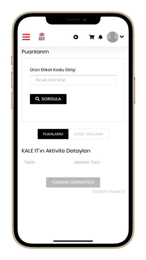 • Kale silindir grubu ürünleri satışları sonucunda, ürün üzerinde bulunan etiketlerdeki özel alanı kazıyarak elde edeceğiniz alfa numerik kodları uygulama ekranında girerek puan kazanabileceksiniz.