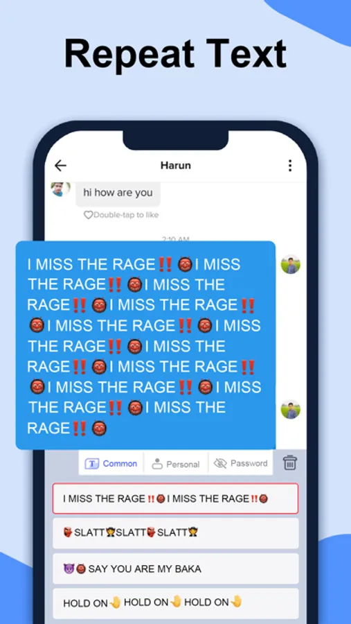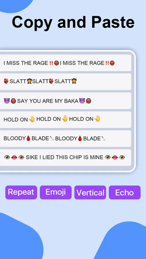 Copy and paste frequently used chat sentences and add them to the "common" list, with fancy input effects 【repeat/emoji/vertical/echo】, especially suitable for social scenes.