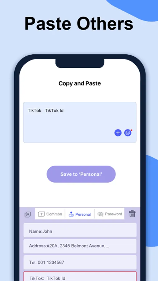 Edit personal information in advance in the "personal" list of the keyboard, such as name, telephone number, email address, social, etc., especially for scene such as website registration and online ticket purchase.