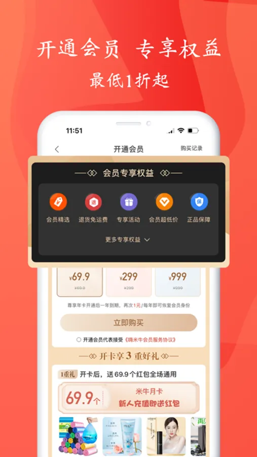 3、会员权益:会员0元购物专区,会员限时购,会员精选区、年卡会员尊享区;
