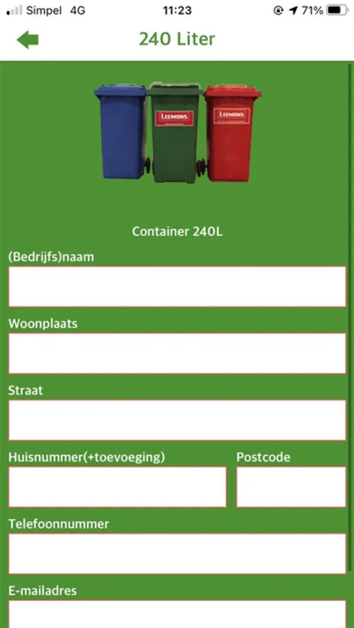 Met de app van Leemans Afval & Transport kunt u rolcontainers in drie stappen aanmelden voor lediging.
