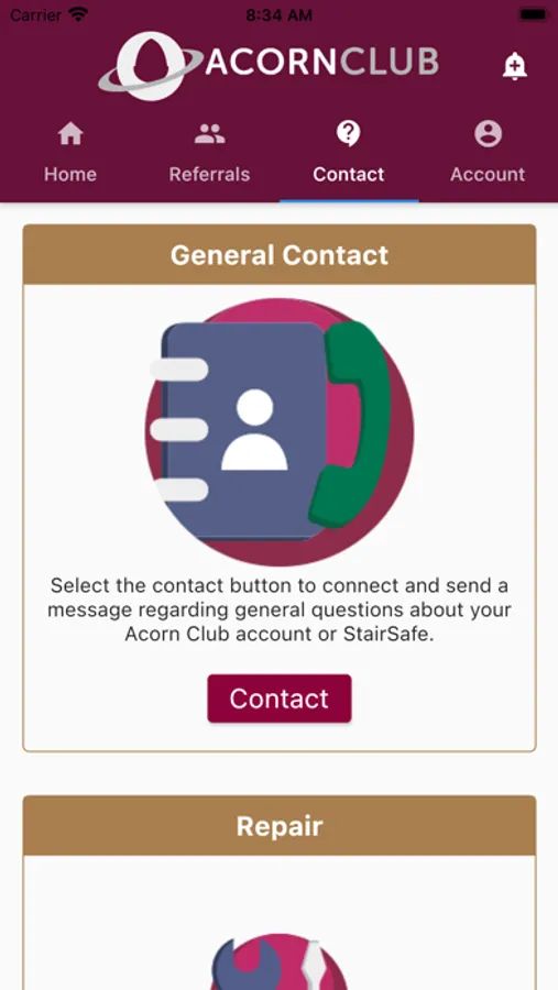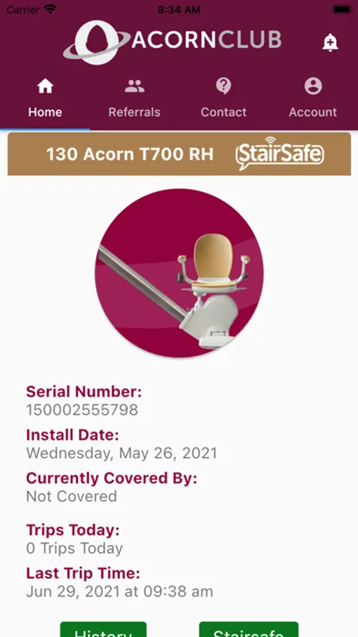 The Acorn Club is the place to find all the information about your personal stairlift. With the all in one easy-to-use customer portal, you will be able to continue the benefits of owning an Acorn Stairlift. Acorn Club mobile app includes: