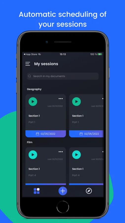 Start a session and our app will schedule the following dates to facilitate repetition and memorization. If you have difficult information to remember, Weetee will automatically adjust the date of your next session.