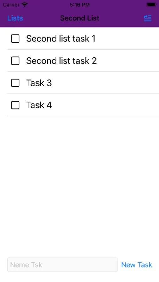 This application will allow you to quickly create task lists and quickly add tasks to them. This application allows you to create many lists and quickly switch between them. Synchronizes your task lists on different devices within the same apple account