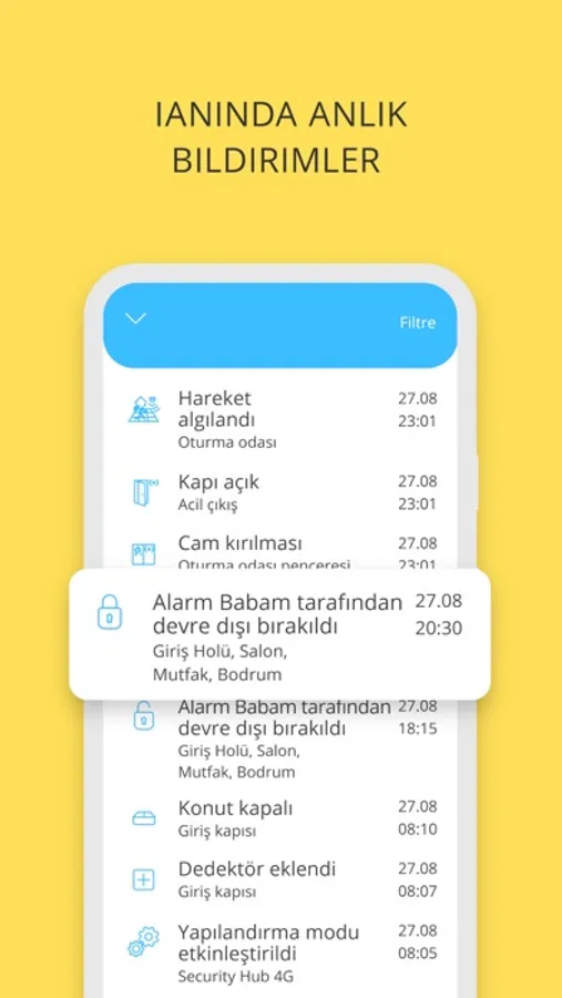- Davetsiz misafir, yangın, acil durum uyarıları;