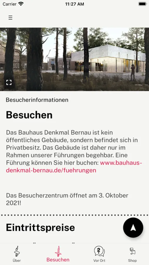 Das Besondere am UNESCO-Welterbe Bauhaus in Bernau auf eigene Faust entdecken. Mit der neuen App „Bauhaus Welterbe Bernau“ können Spontanentschlossene oder Individualtourist*innen allein auf Entdeckungstour gehen. Mit dem beweglichen Zeitregler durch die Geschichte des Bauhauses und der ehemaligen ADGB-Bundesschule sliden, Architekturhighlights entdecken oder mit einer Quiztour das Gelände erkunden – mit der neuen Bauhaus Welterbe Bernau App des Besucherzentrums Bernau ist das kein Problem!