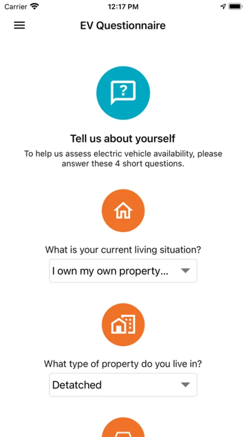 In addition to collating information on the journeys, the app requests information on the drivers’ living arrangements to assess the feasibility of home charging. Questions include whether they have a home charger, whether their home is owned, mortgaged, rented or shared accommodation, type of accommodation and where the vehicle is kept overnight. They can edit this information at any time within the app.