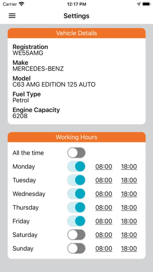 Drivers can set up parameters so the app only records their journeys on certain days/times, or they can set it to track all journeys.