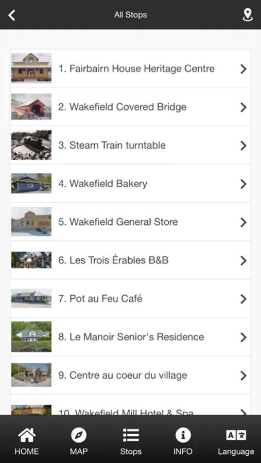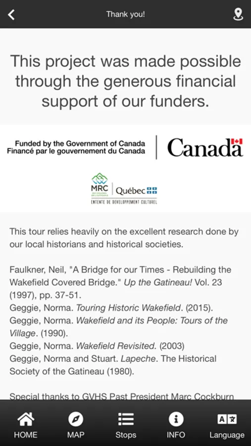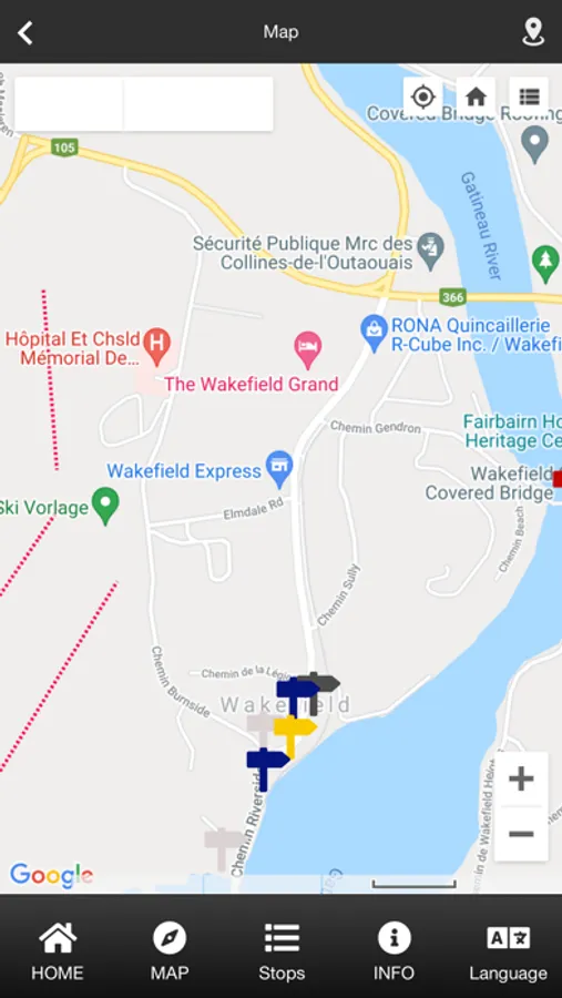 The tour officially starts at Fairbairn House on the north side of the Wakefield Covered Bridge, but you can open the app while walking through the Village and get prompts when you approach a tour stop. Note that the stops around the Mill are accessed via a 650 metre uphill climb. The tour ends at the corner of Riverside and Ch. de la Vallée de Wakefield, and will take approx. 1.5 hours to complete on foot.