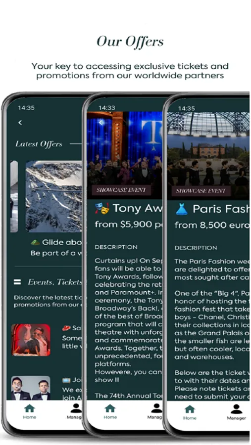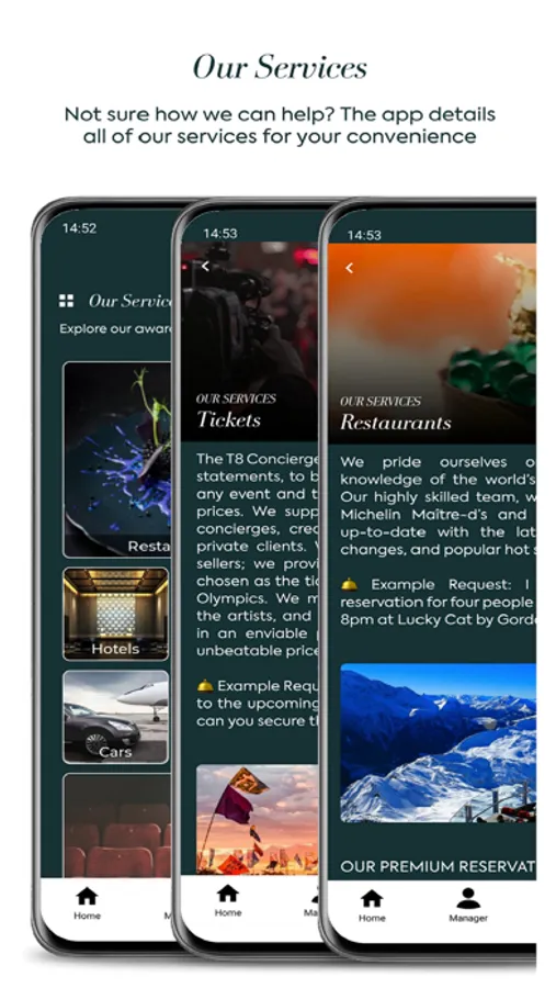 From priority reservations at the most exclusive restaurants to luxury travel planning; VIP tickets and premieres to sold-out events, our app is your always-on concierge companion.