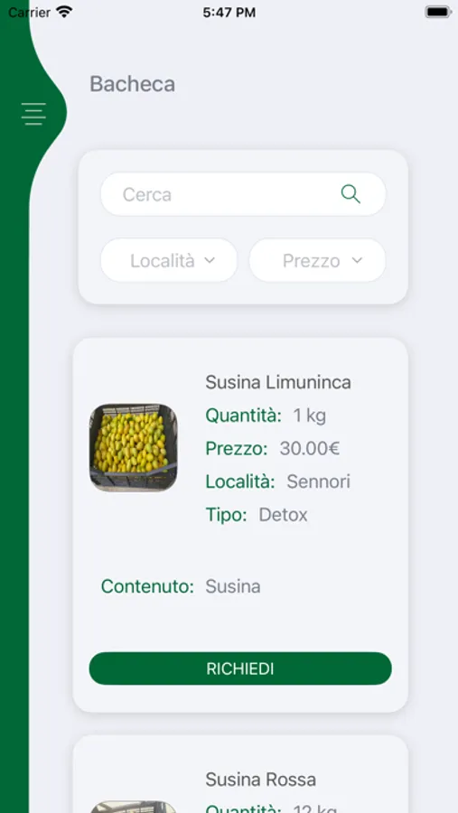All’interno dell’applicazione è stata inserita una bacheca pubblica in cui i vari coltivatori potranno caricare i propri ortaggi indicando, eventualmente, quali possono essere venduti: eccedenze nel caso dei coltivatori privati o produzione vera e propria nel caso di aziende agricole.