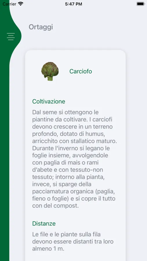 Hometables permette anche di avere tutte le informazioni più importanti relative agli ortaggi (72 nello specifico): tipologia di coltivazione, distanze, zona, ecc.