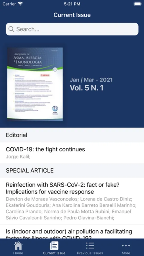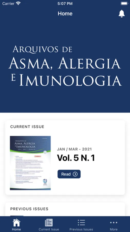 O periódico Arquivos de Asma, Alergia e Imunologia tem a missão de divulgar estudos e informações que tenham relevância na construção do saber na área de Alergia e Imunologia. A revista, lançada em 2017, é o meio de comunicação científica oficial da Associação Brasileira de Alergia e Imunologia (ASBAI) e da Sociedad Latinoamericana de Alergia, Asma e Inmunología (SLAAI).