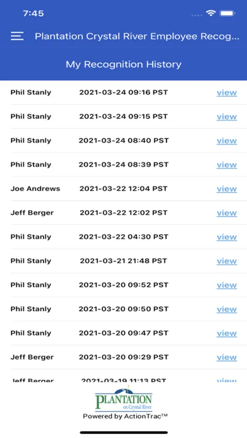Plantation Crystal River Employee Recognition app provides workers to nominate his/her colleagues.