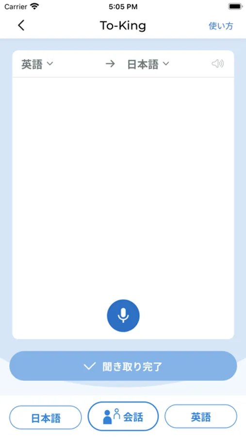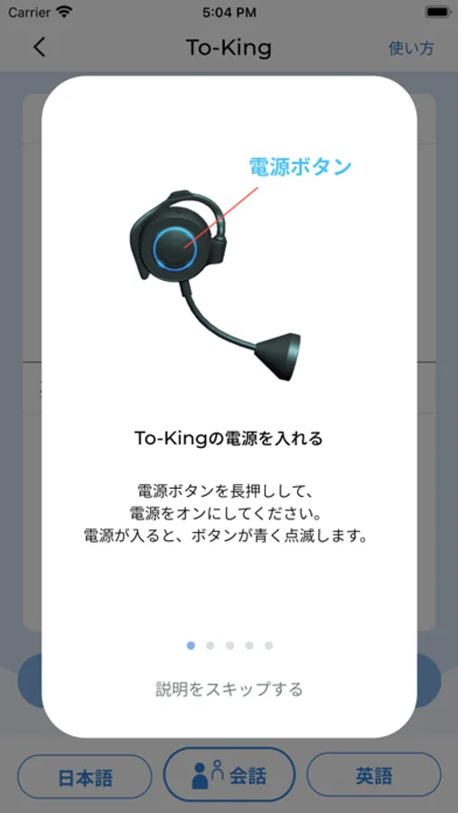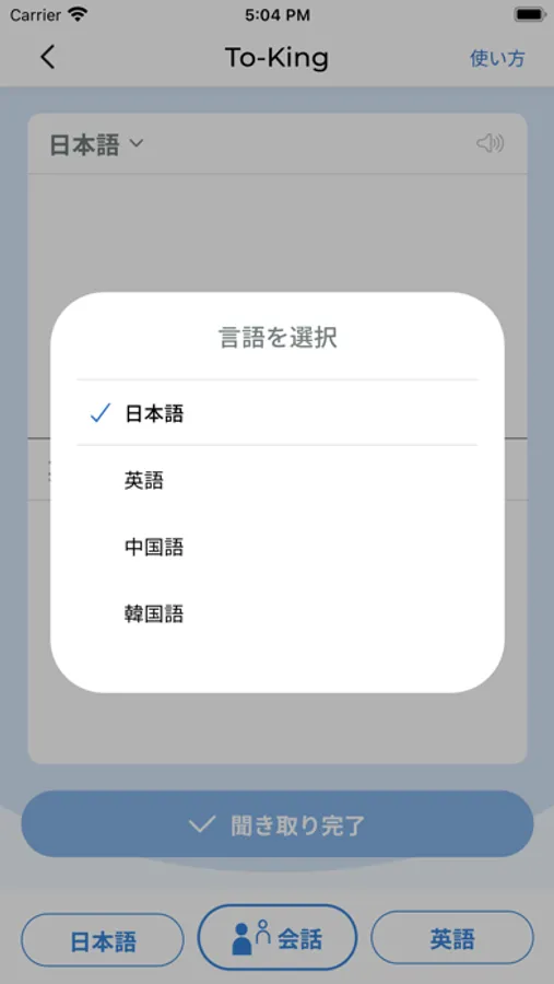 To-Kingのスピーカーと連動して、自分の話した内容の翻訳ができます。