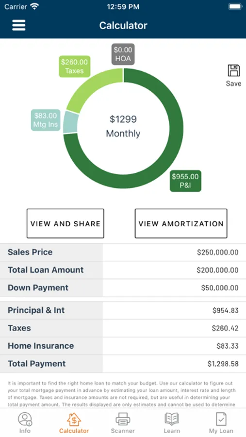 The calculations provided by the LSB Mortgage App are useful in giving you an idea of what