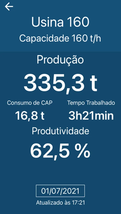 Este aplicativo monitora a produção de usinas com automação da Tubiello Tecnologia em tempo real.