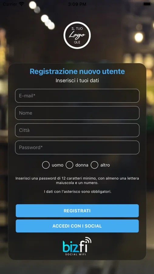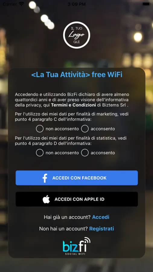 ATTENZIONE: QUEST’APP FUNZIONA SOLO NEI LOCALI CHE ADERISCONO A BIZFI. Sei il gestore di un locale? Contattaci per informazioni.