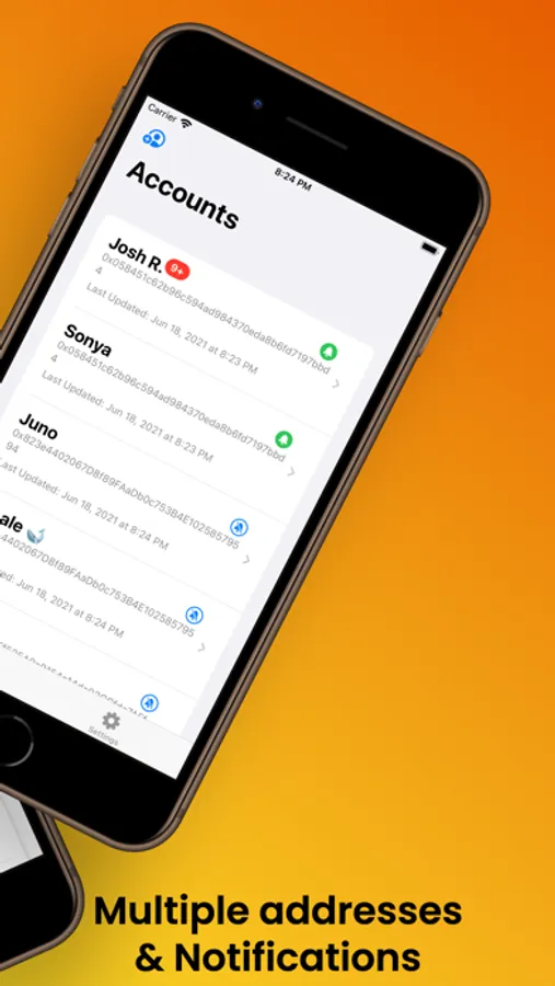 - View transactions of any address without leaving the app and also add them to the saved account lists if you want;