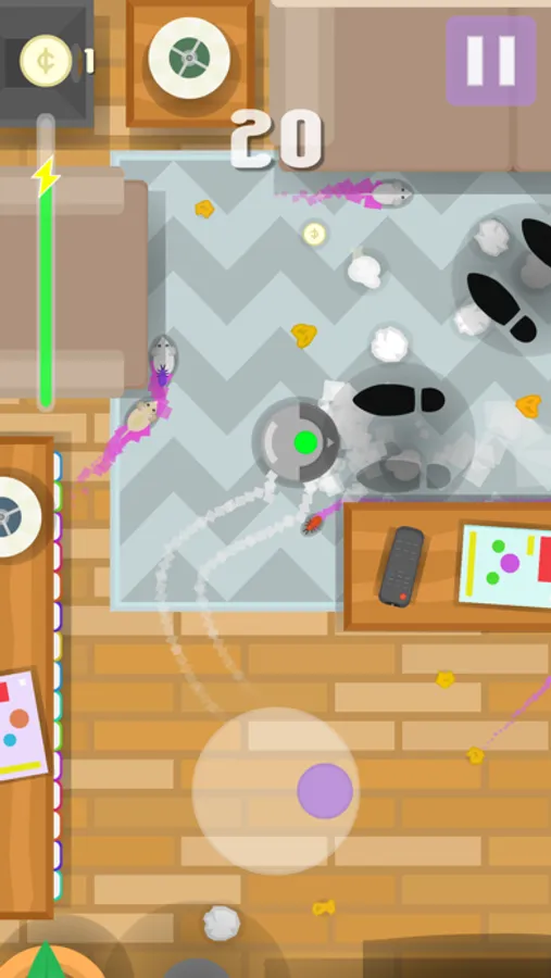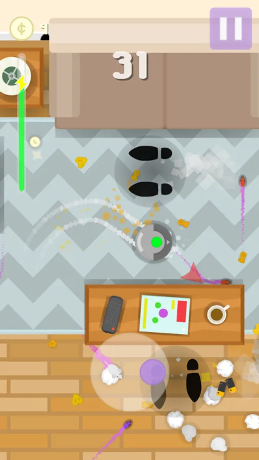 Zoom around the room as a robot vacuum in Good Robot! With quick wits and split second planning, only you can keep this room clean in a world of chaos and litter!