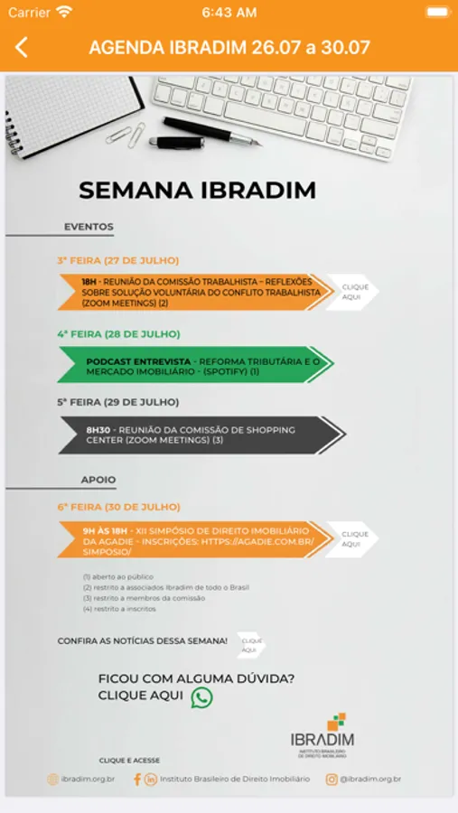 O Instituto Brasileiro de Direito Imobiliário possui o aplicativo IBRADIM você terá acesso aos conteúdos:
