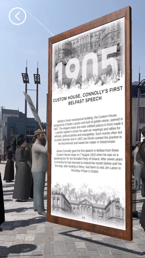 The Augmented Reality app allows visitors and citizens alike to bring the story of James Connolly in Belfast to life!
