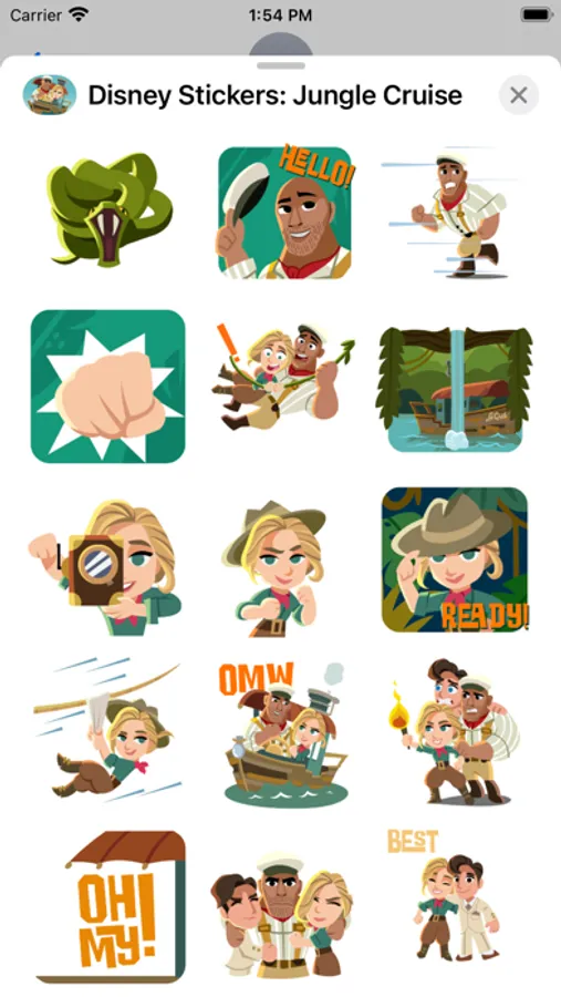 All aboard the adventure of a lifetime! Add the dangers of the jungle to your messages with 21 new stickers for iMessage inspired by Disney's Jungle Cruise. Experience Disney's Jungle Cruise in theaters or order it on Disney+.