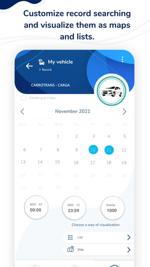 - Make customized event record searching up to 2 days and view them on lists or maps.