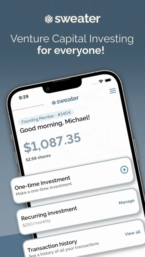- Invest at your own pace: Begin with a one-time investment of $500 or go all-in with $500k. Accredited or not, Sweater welcomes everyone with open arms. We're the venture capital fund for every aspiring investor!