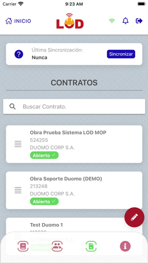 La aplicación LOD DUOMO está construida y pensada para que el inspector fiscal y el contratista de la obra puedan gestionar toda la información del contrato adjudicado de manera simple, rápida y eficiente a través de su smartphone y sincronizada con los servicios web del sistema central.