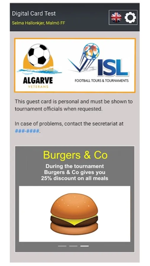 Digital guest cards take cup and tournament participation to a new level. With ProCup DC in your mobile phone, you as a participant have information directly in your phone. Sponsoroffer, meal check-in, tickets etc. Everything is in your phone. You can easily scan tickets and check-in tags with your QR reader in your phone.