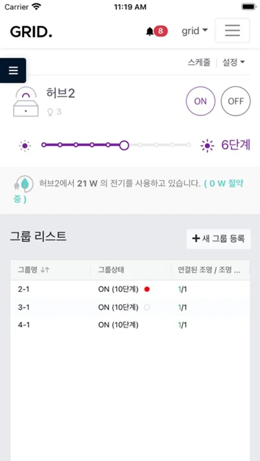 - 여러개의 공장등을 하나의 그룹으로 만들어 한번에 스위치를 켜거나 끌 수 있습니다.