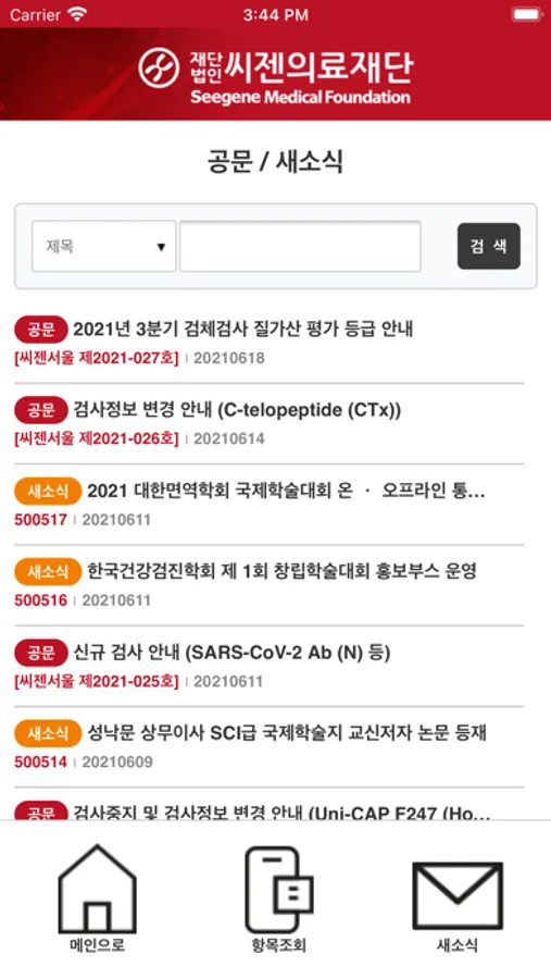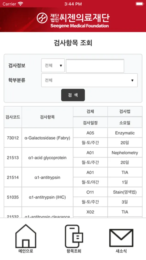 최신 검사 정보 확인 및 2,000여 가지의 검사항목 조회 가능