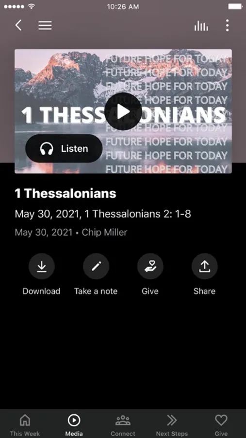 This app will help you stay connected with the day-to-day life of our church. With this app you can: watch or listen to past messages; stay up to date with push notifications; share your favorite messages via Twitter, Facebook, or email; and download messages for offline listening.