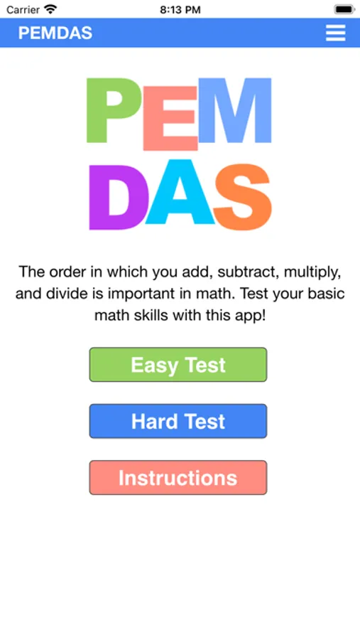 As such, the PEMDAS App will test your order of operations math skills. We hope you will find the app both educational and entertaining.