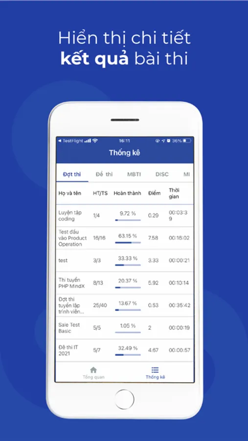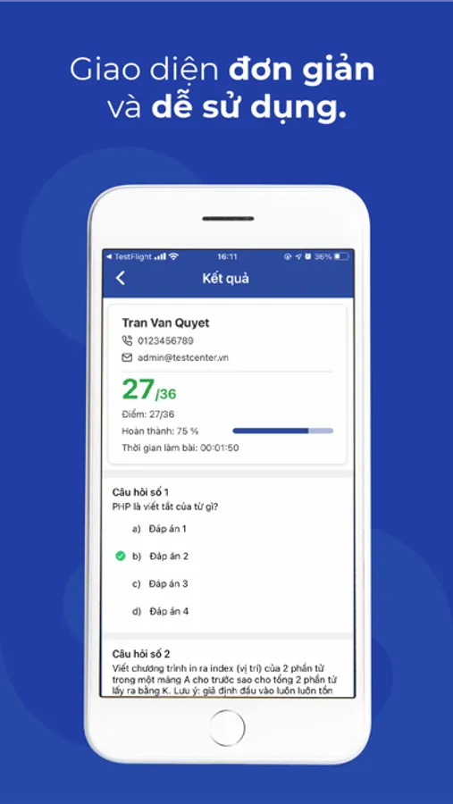 Testcenter là nền tảng tạo đề thi và đánh giá năng lực nhân sự hàng đầu Việt Nam. Hỗ trợ Doanh nghiệp thiết lập quy trình tuyển dụng, đào tạo nhân sự theo tiêu chuẩn của các tập đoàn lớn như Google, Microsoft,…