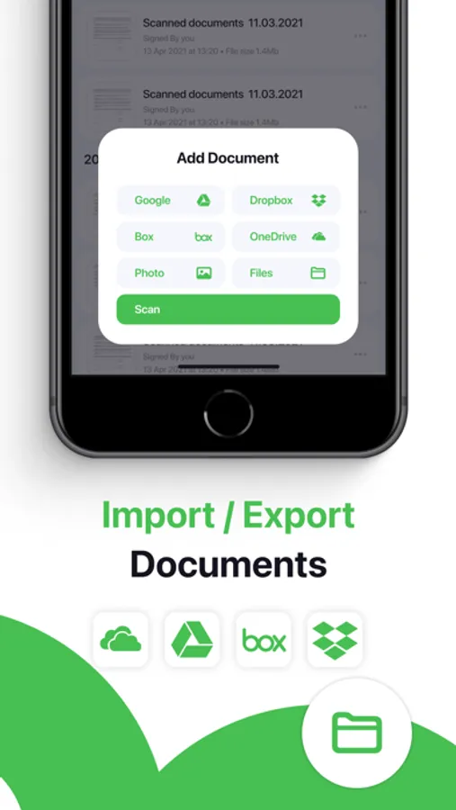 • Import and export documents from cloud storage - Import documents from Dropbox, Box, Google Drive and OneDrive;