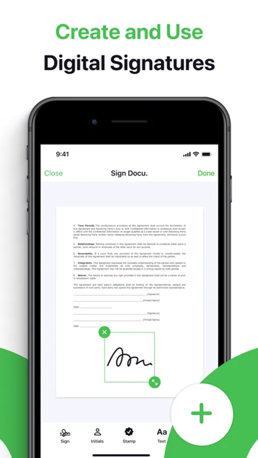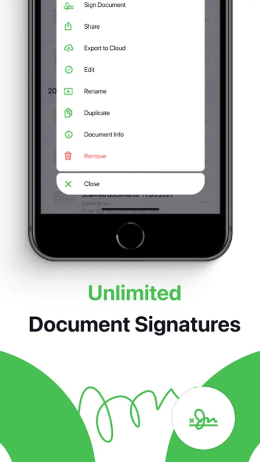 • Unlimited document signatures - Sign as many documents as you need, store signed documents and share your signed documents via email or messaging apps;