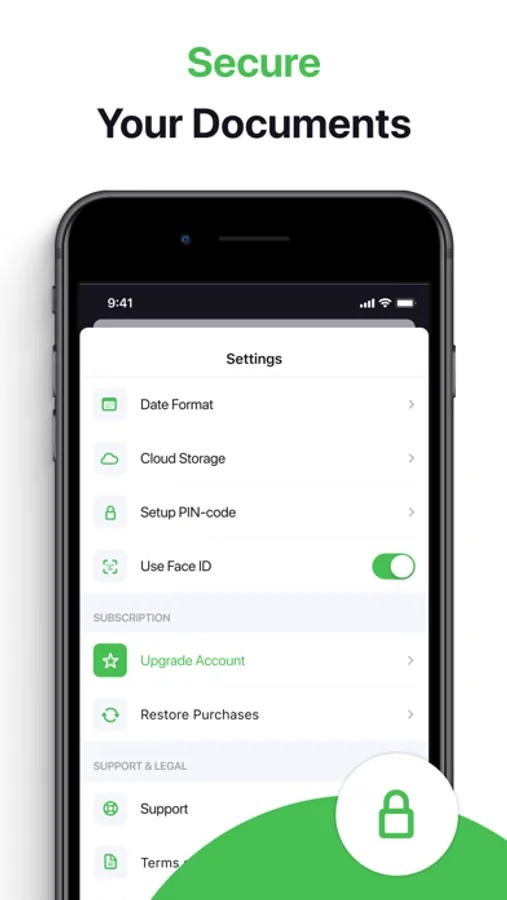 • Document Security - Authenticate and protect signed documents by Fingerprint ID, Face ID or PIN;