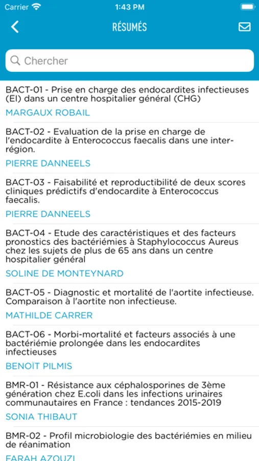 - consulter l'ensemble des résumés des communications (communications orales, posters) et la liste des orateurs et auteurs