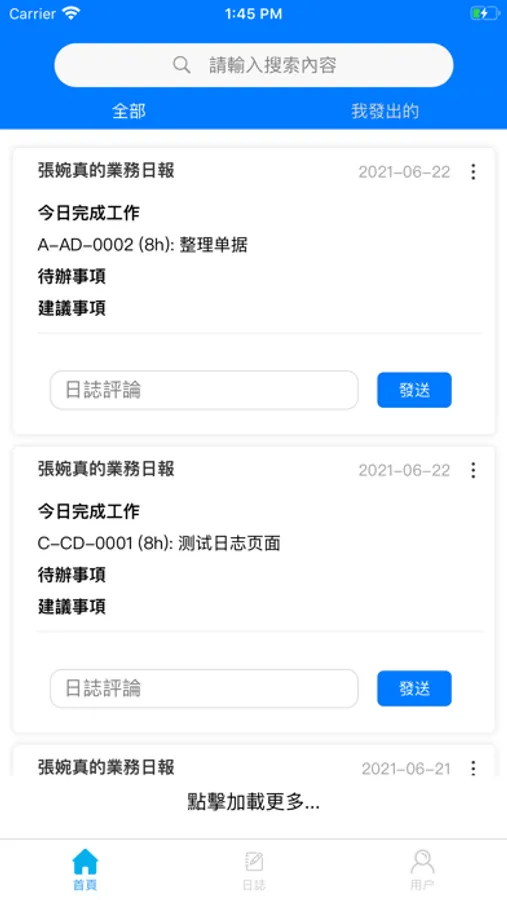 >>填写日志: 除了于PC上可填写日志,也提供APP上填写工作日志。