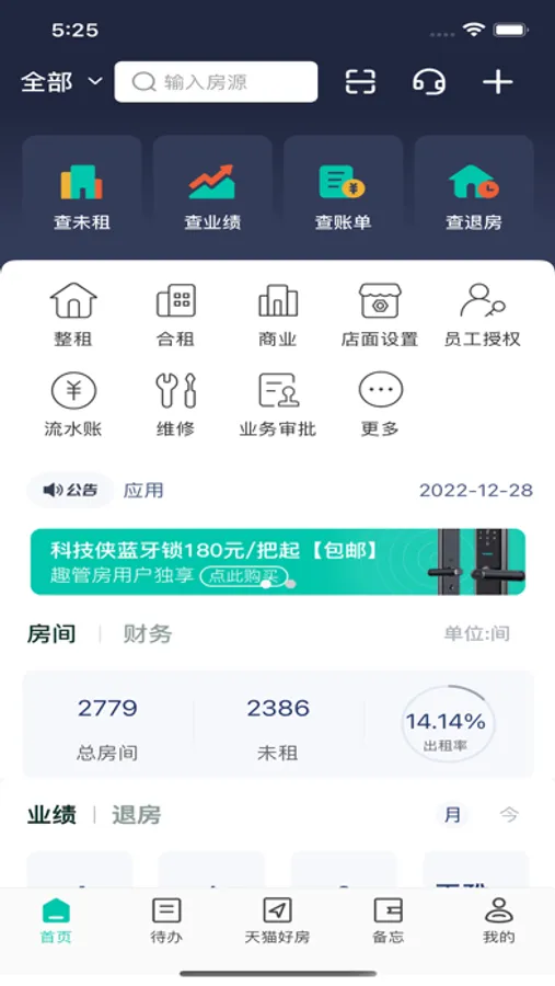 趣管房公寓管理系统具备强大的租赁业务、财务管理、OA管理、售后服务等,为各种规模的公司提供了一站式的整体解决方案。