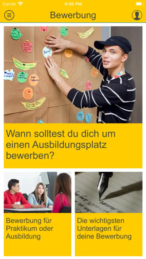 The app covers the most important topics for the successful career orientation for young people, such as successfully completing job applications, taking advantage of internships and mastering the professions.