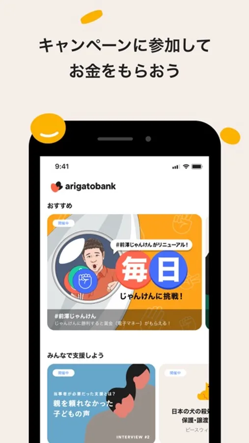 arigatobankは、「楽しいコトが、お金に変わる。」をコンセプトとした、お金のプラットフォームアプリです。