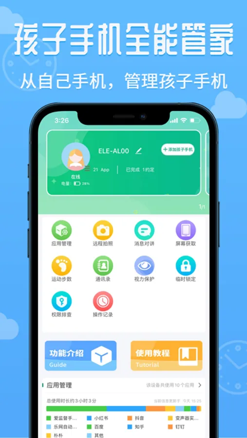 【应用管理】合理分配应用使用时长,帮助孩子脱离手机网瘾;