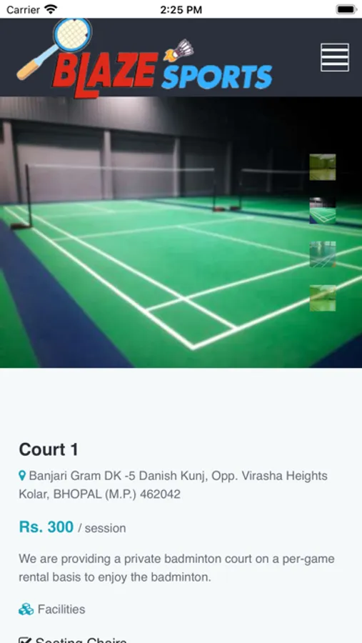 Blazesports provide playgrounds and courts for various sports activities in Bhopal city on hourly basis, we provide all amenities and facilities to enjoy your game in a pleasant environment. We enable you to book your preferred slot online on an hourly basis, After booking a slot you can pay online, it will generate a slip on your end which would be a token for your entrance. you can go this mini steps all through your app or website. It helps you to get connected with the right audience who finds players to play the sports near by home, colony, or city.