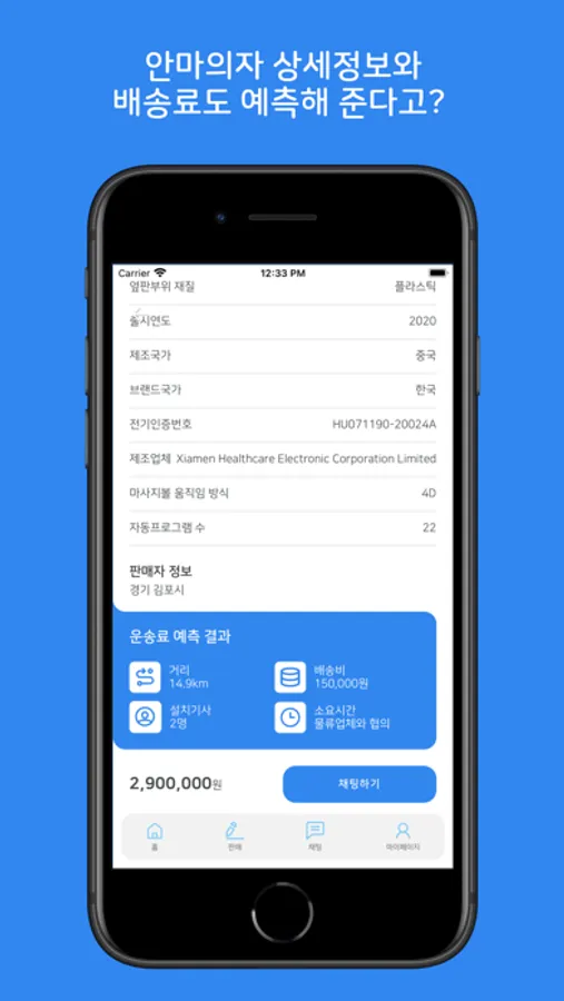 • 앱에서 판매할 안마의자를 손쉽게 상품으로 등록
