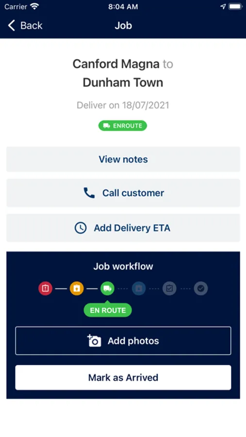 Designed for haulage companies and owner drivers to help with job allocation, giving users a live view of their jobs and vehicles status, users can see when a driver arrives at the pick-up location. They can then confirm the status of the job as picked up, enter the estimated time of arrival, and mark the load as in transit once the load has left the pickup site. The entire journey is updated in real-time with updates being sent to the loader via email.
