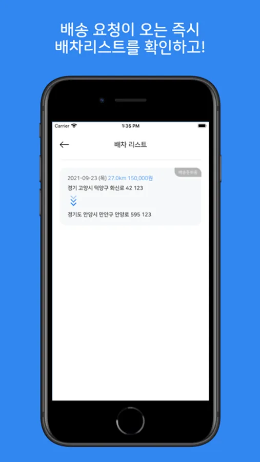 • 앱을 통해 배정된 배송 요청 및 배차정보를 확인